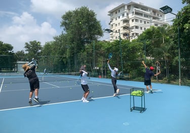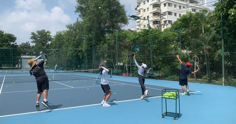 Tập luyện tennis theo nhóm không những giúp cho bản thân phát triển nhanh hơn mà còn giúp chúng ta sở hữu một cơ thể khỏe mạnh và deo dai hơn.